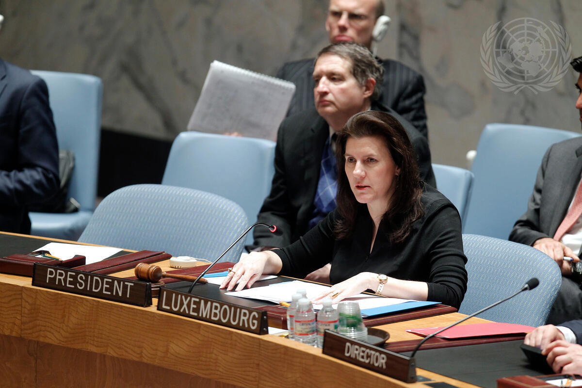 Sylvie Lucas, Permanent Representative of Luxembourg to the UN and President of the Security Council for March, chairs the Council’s meeting on the situation in Iraq.
