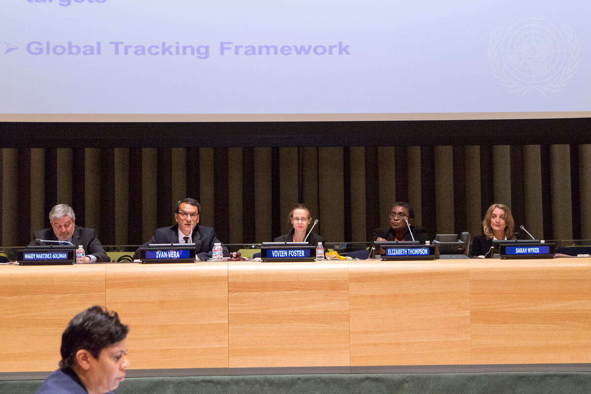 Ivan Vera (second from left), Secretary of UN-Energy Secretary/Senior Sustainable Development Officer, UN Division for Sustainable Development, UNDESA, speaks at today's discussion on ""Potential Energy Goals, Targets and Indicators for the Post- 2015 Development Agenda"". Also on the panel are, from left: Magdy Martinez-Soliman (Moderator), Deputy Assistant Administrator and Director, a.i., of the Bureau for Development Policy at the UN Devlopment Programme (UNDP); Vivien Foster, Sector Manager, Sustainable Energy Unit, World Bank; Elizabeth Thompson, Senior Advisor SE4ALL; and Sarah Wykes, Lead Analyst Climate and Energy, Catholic Agency for Overseas Development (CAFOD).