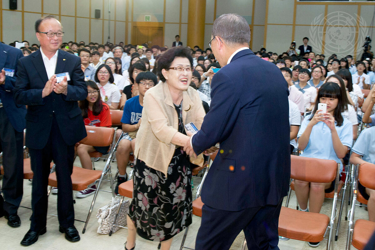 Secretry-General Ban Ki-moon deliverered a lecture to middle and high school students at the City Hall of Chungju, Republic of Korea, where he grew up.