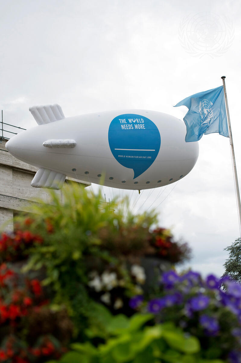 An airship publicizes “The World Needs More…”, a campaign launched by the UN and its humanitarian partners on World Humanitarian Day (19 August), as the UN Office at Geneva (UNOG) commemorates the Day.