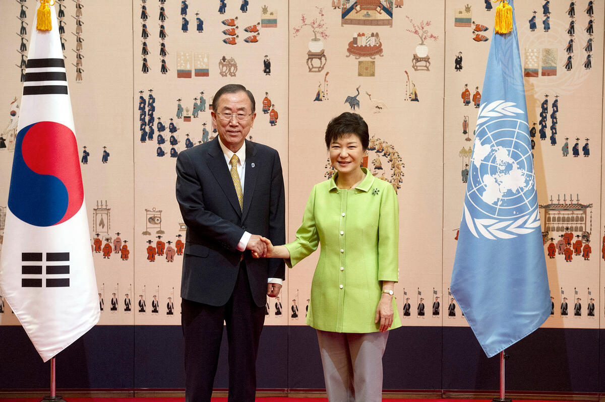 Secretary-General Ban Ki-moon (left) meets with Park Geun-hye, President of the Republic of Korea.