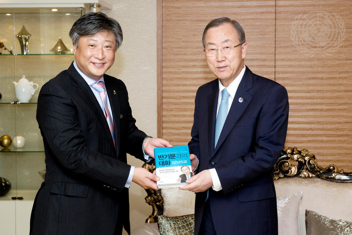 Secretary-General Ban Ki-moon (right) meets with Yang Won-seok, head of Random House Korea.