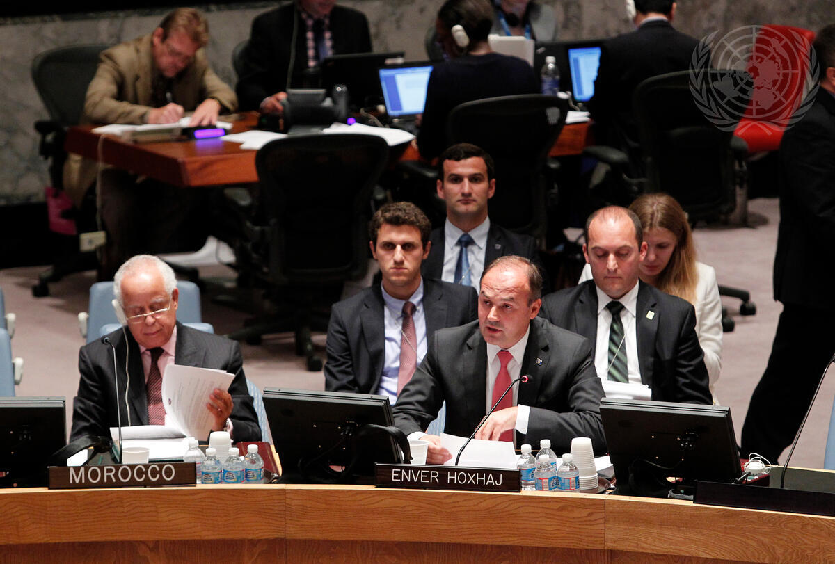 Enver Hoxhaj, representative of Kosovo, addresses the Security Council meeting on the UN Assistance Mission in Kosovo (UNMIK).