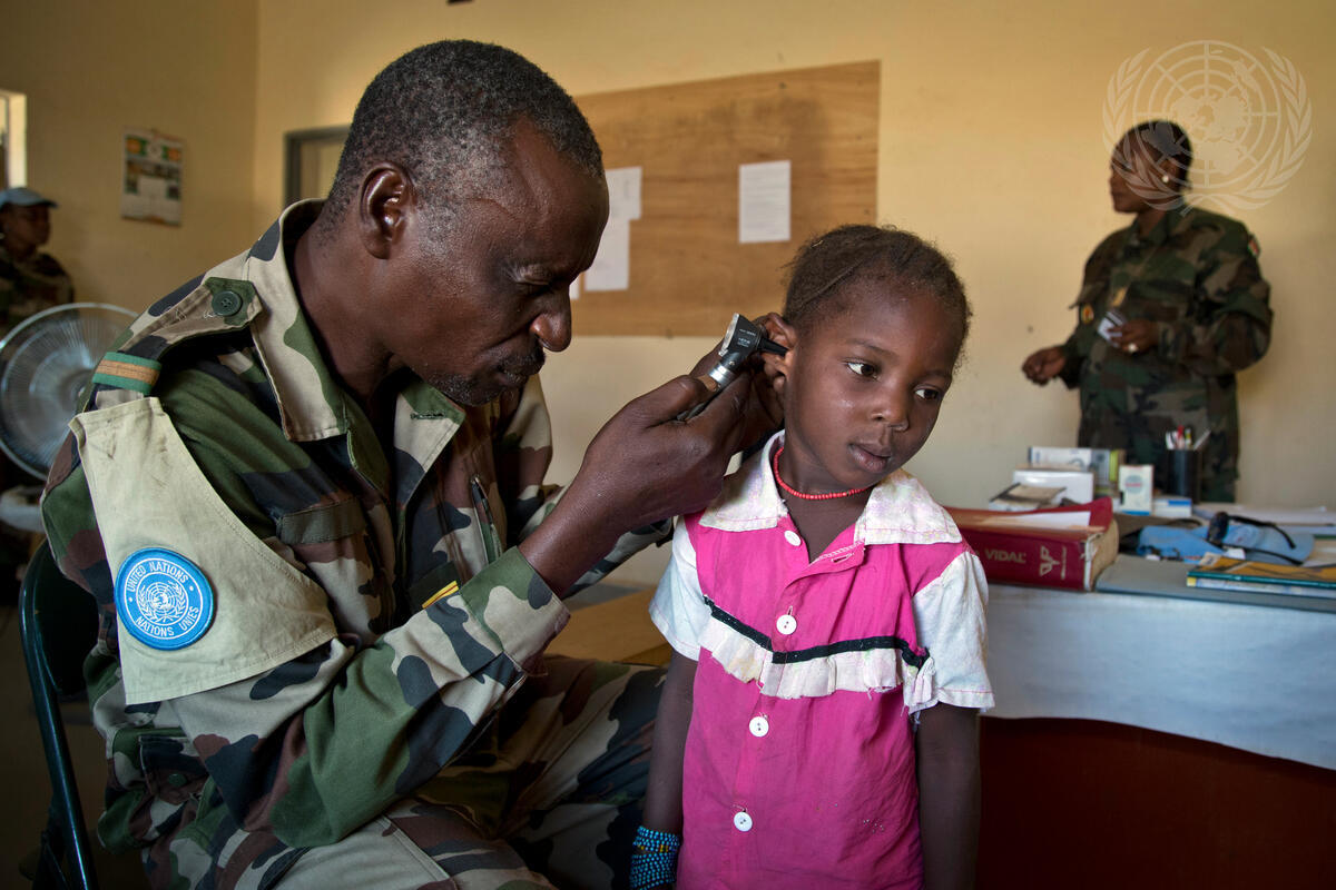 A Malian child receives a free consultation at a medical clinic in Gao, Mali, run by the the Niger contingent of the UN Multidimensional Integrated Mission in Mali (MINUSMA).