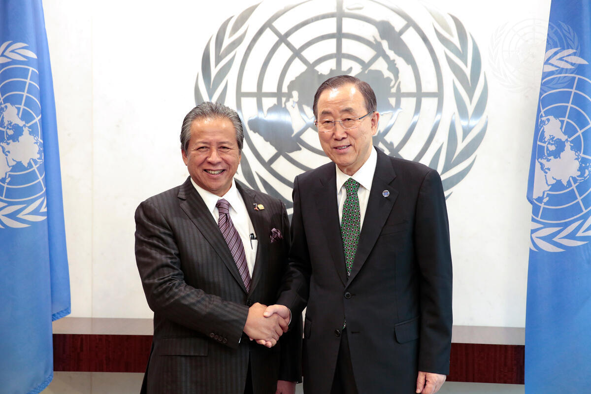 Secretary-General Ban Ki-moon (right) meets with Dato Sri Anifah Aman, Minister for Foreign Affairs of Malaysia.