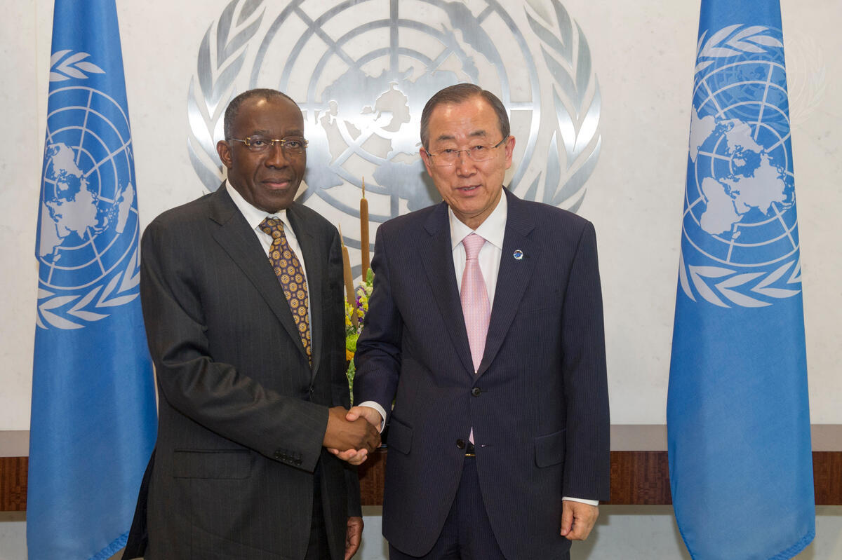 Secretary-General Ban Ki-moon (right) meets with Raymond Tshibanda N'tungamulongo, Minister for Foreign Affairs, International Cooperation and Francophonie of the Democratic Republic of the Congo.
