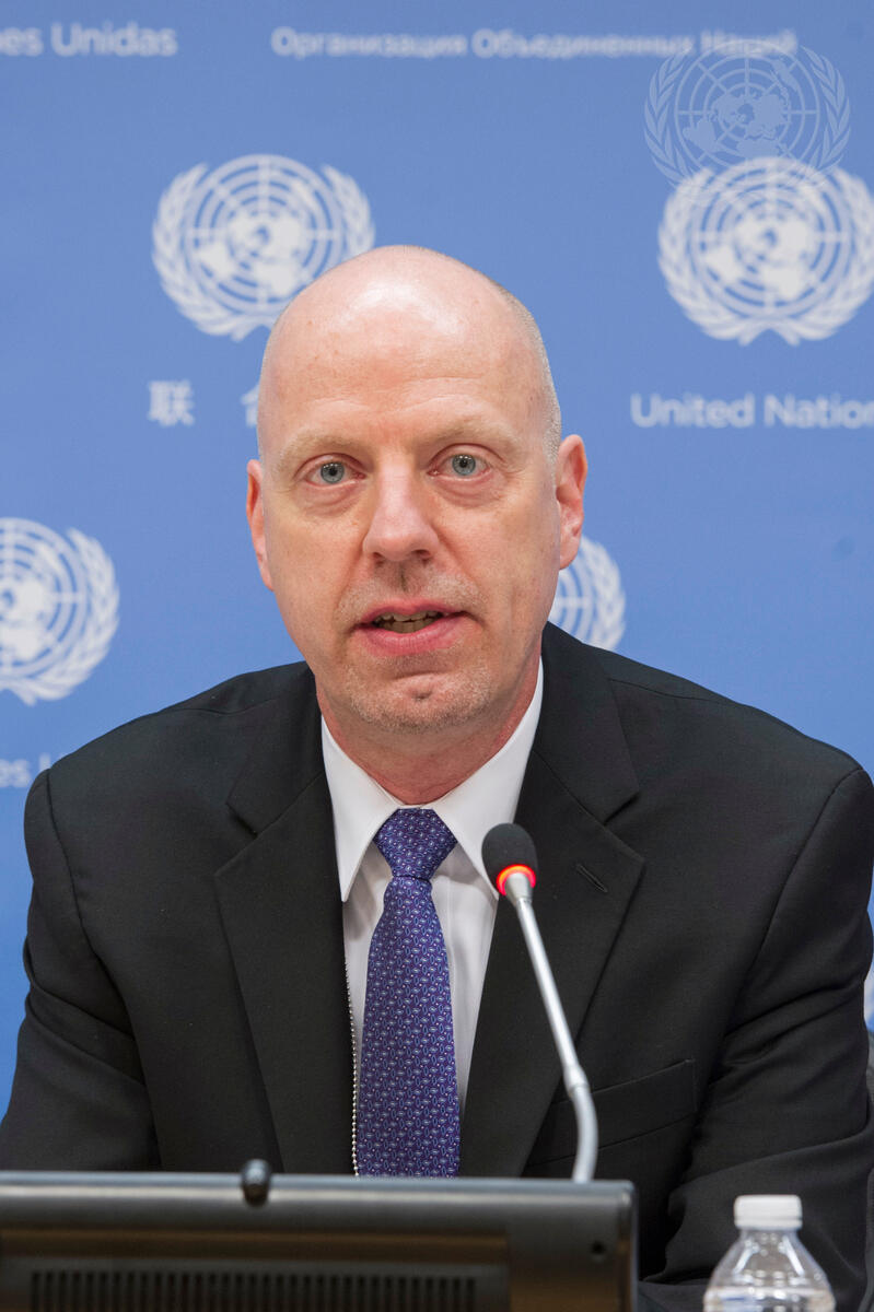 John Wilmoth, Director of the Population Division at the UN Department of Economic and Social Affairs (UN-DESA), addresses a press conference on the latest figures from the “World Urbanization Prospects: the 2014 Revision”. Also briefing journalists with him was François Pelletier, Chief of the Population Estimates and Projections Section, Population Division, UN-DESA.