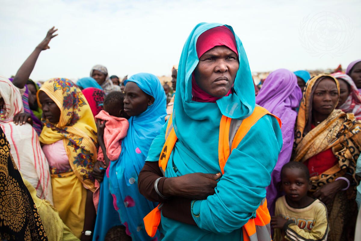 Jazira Ahmad Mohamad (centre right), a community-policing volunteer at Zam Zam camp for internally displaced persons (IDPs), near El Fasher, capital of North Darfur. The African Union-United Nations Hybrid Operation in Darfur (UNAMID) has trained women in IDP camps to be first-level responders for victims of crime and also to make it easier for women victims to report crimes.