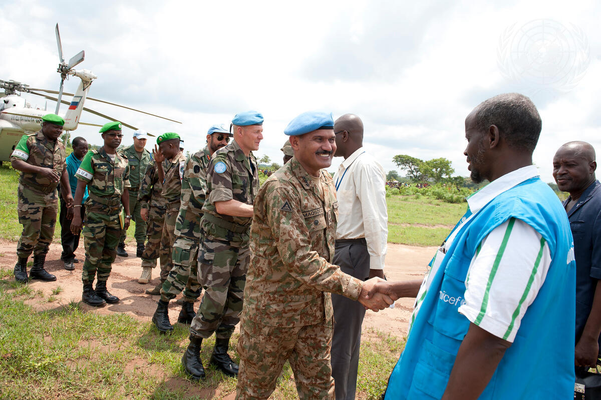 Lieutenant General Maqsood Ahmed, UN Military Adviser for Peacekeeping Operations, and Brigadier General Frédéric Hingray, Force Chief of Staff for the UN Multidimensional Integrated Stabilization Mission in the Central African Republic (MINUSCA), jointly visited a military base of the African-led International Support Mission in that country (MISCA), located in Kaga Bandora, 330km north of the capital Bangui.