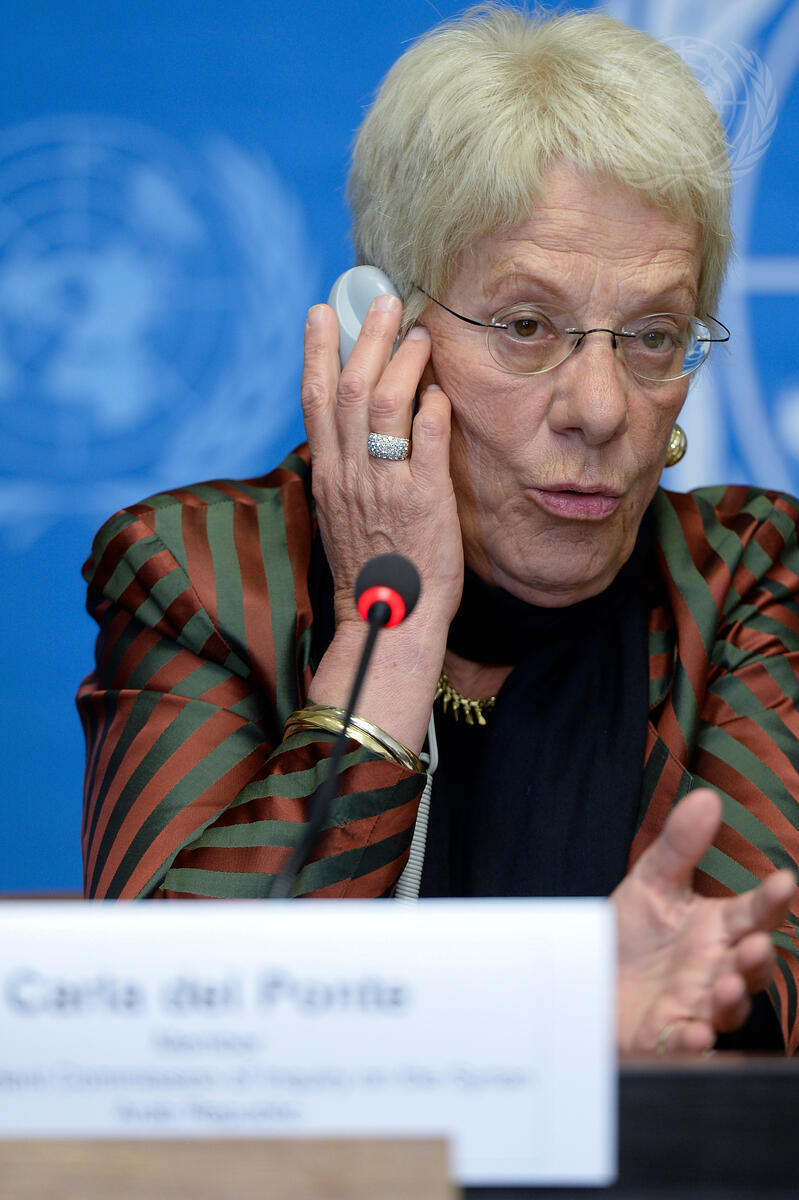 Carla del Ponte, member of the Independent Commission of Inquiry on Syria, briefs journalists on the Commission’a latest report.
