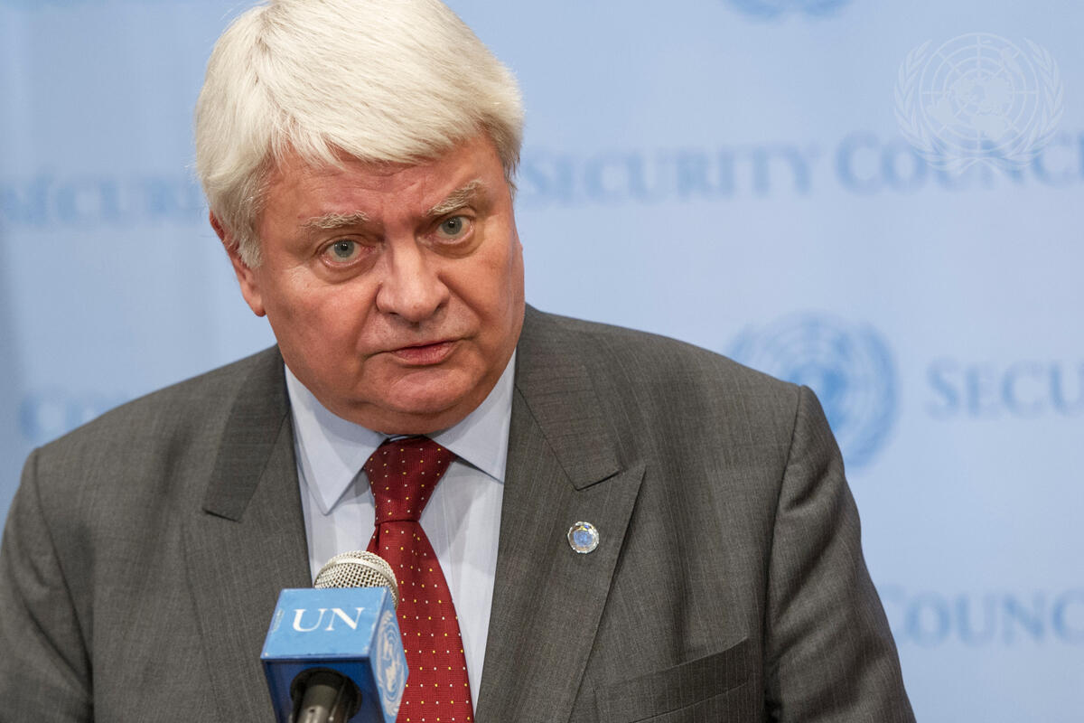 Hervé Ladsous, Under-Secretary-General for Peacekeeping Operations, speaks to journalists following closed-door Security Council meetings on Sudan/South Sudan and on the African Union-United Nations Hybrid Operation in Darfur (UNAMID).