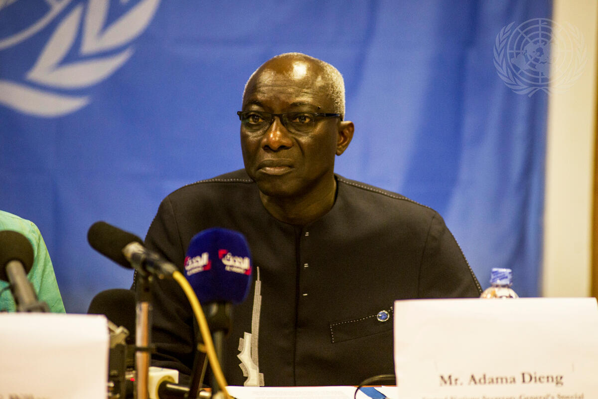 Adama Dieng, Special Adviser of the Secretary-General on the Prevention of Genocide, addresses a press conference in Juba, South sudan, with Navi Pillay (not pictured), UN High Commissioner for Human Rights, at the end of their three-day visit to the country. The visit by the senior UN officials comes in the wake of mass killings earlier in the month in Bentiu and Bor.