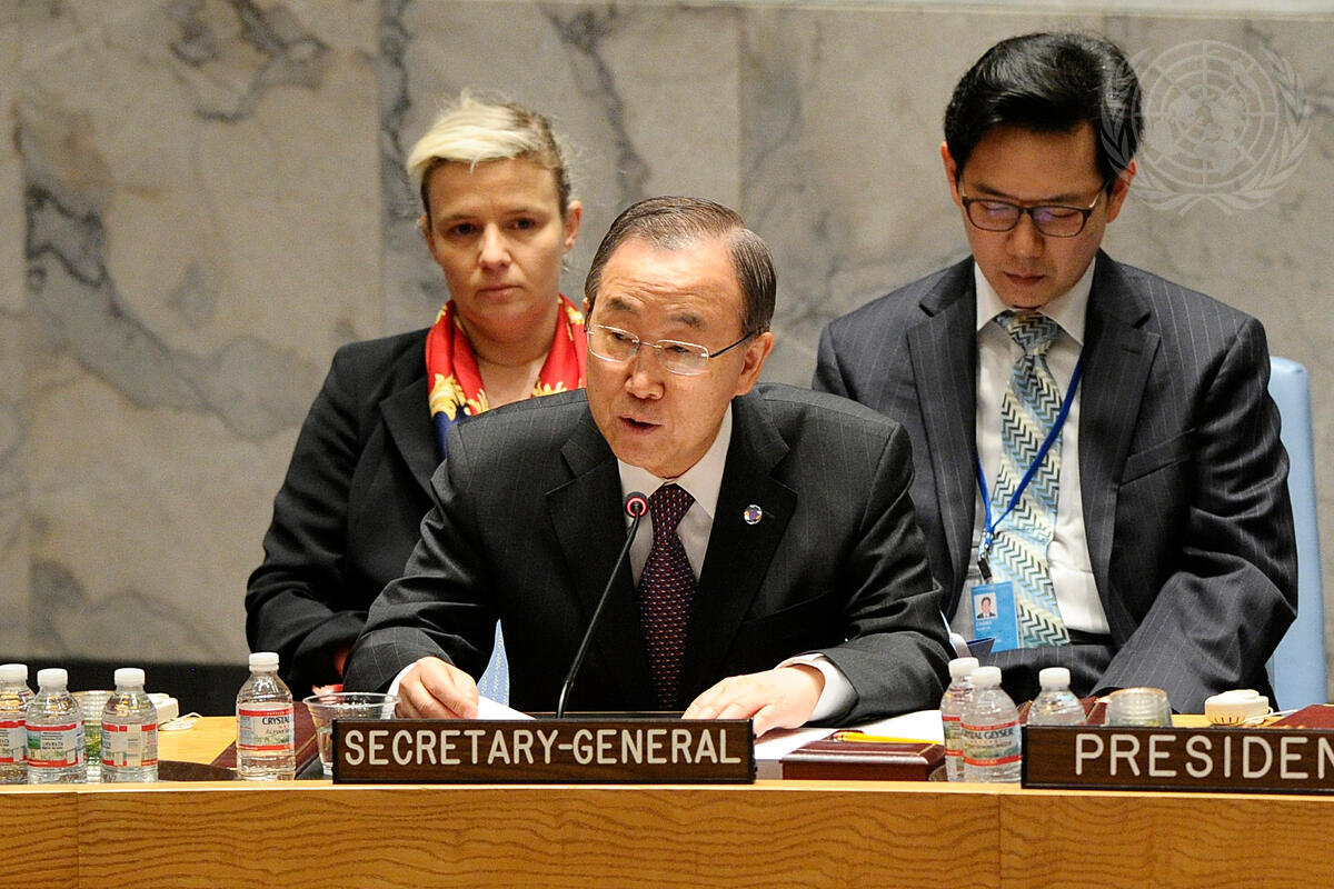 Secretary-General Ban Ki-moon addresses the Council immediately following its unanimous vote to pass Resolution 2139, welcoming the adoption of the resolution while also insisting that humanitarian assistance should not have to be negotiated.