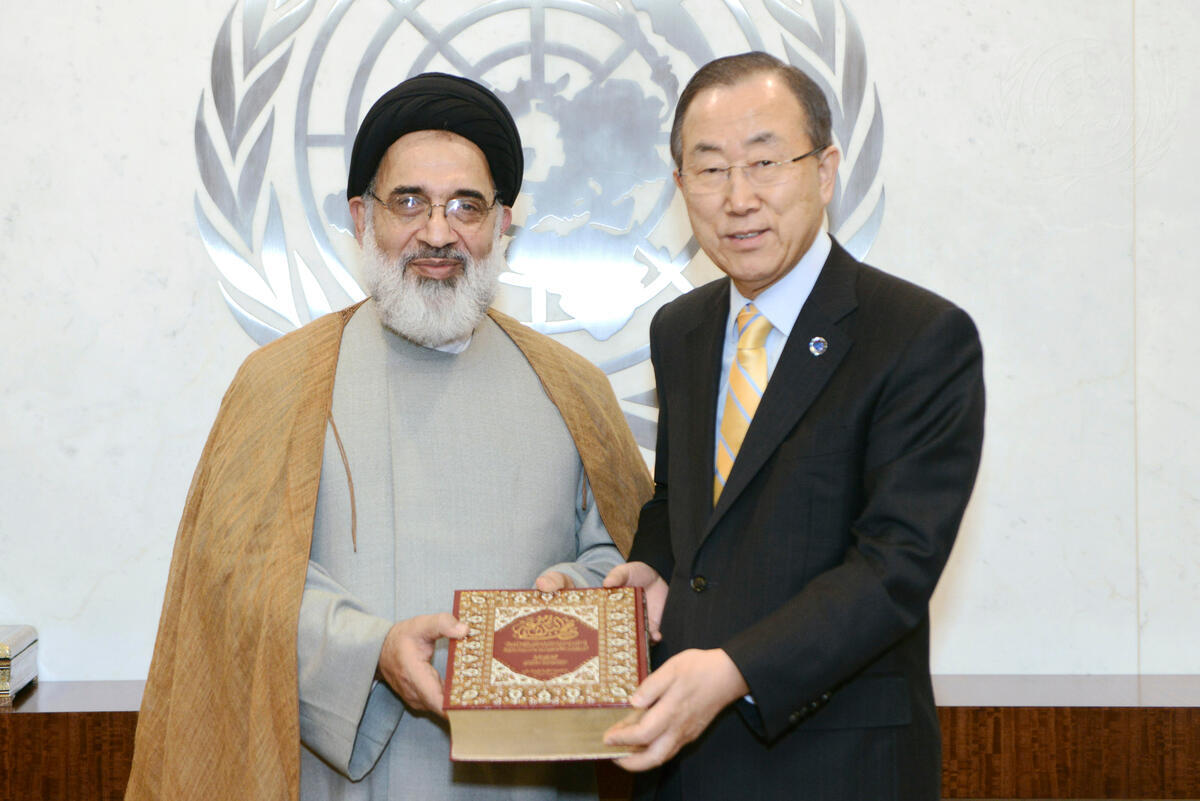 Secretary-General Ban Ki-moon (right) meets with Seyed Sadegh Mousavi, Iranian religious scholar and author.