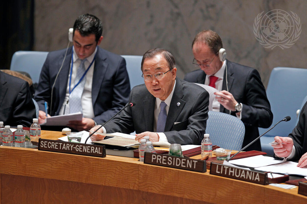 Secretary-General Ban Ki-moon (centre) addresses the Security Council open debate on the promotion and strengthening of the rule of law in the maintenance of international peace and security.