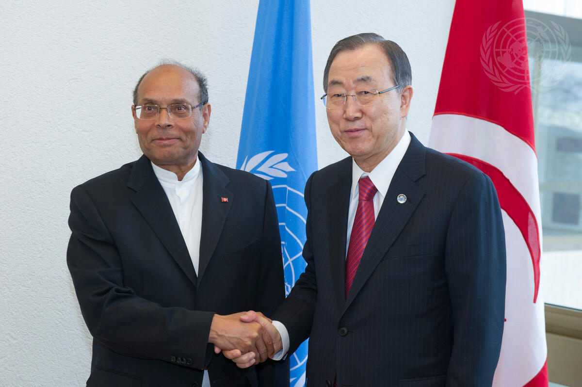 Secretary-General Ban Ki-moon (right) meets with Mohamed Moncef Marzouki, President of Tunisia.