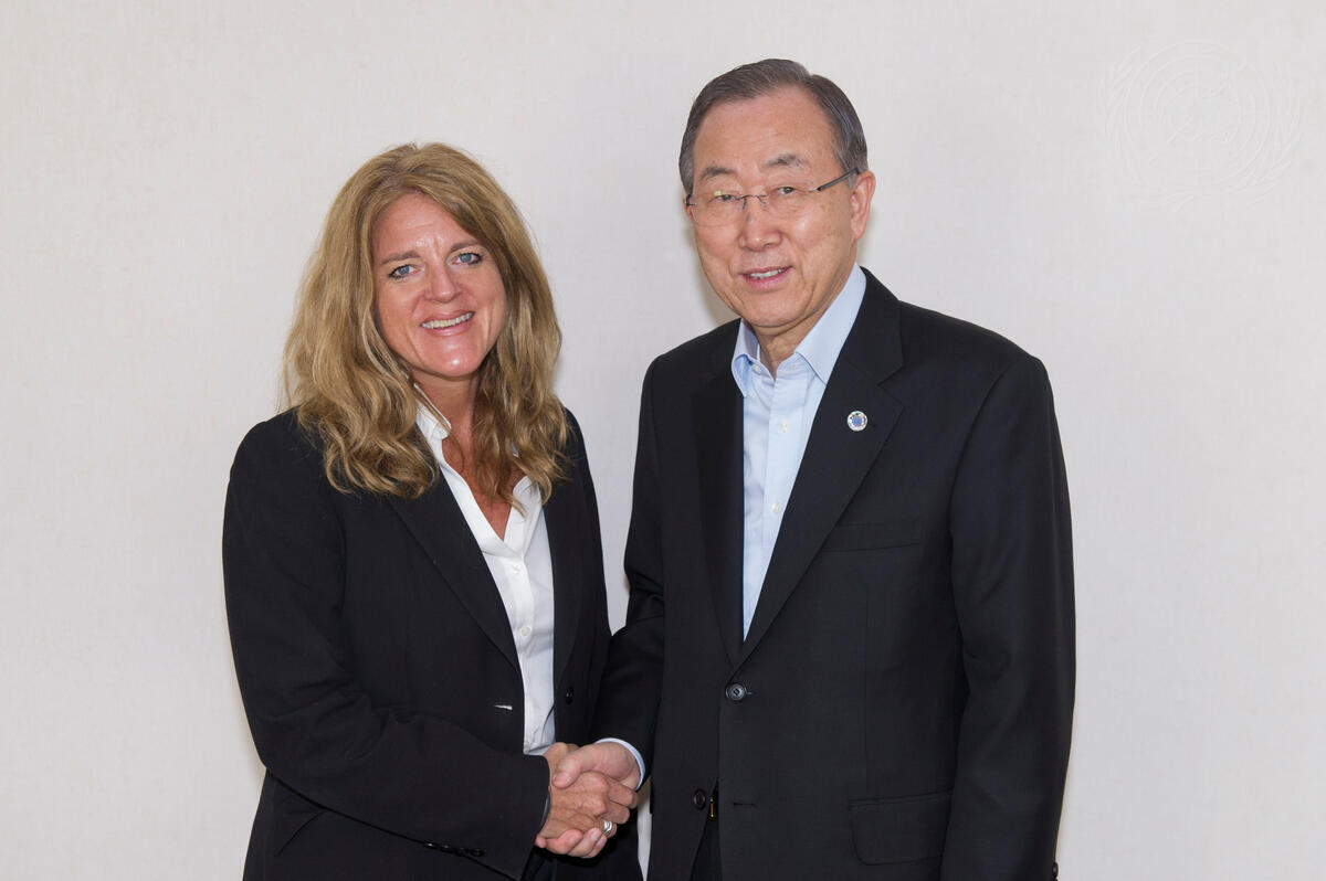 Secretary-General Ban Ki-moon (right) meets with Hilde F. Johnson, his Special Representative and Head of the UN Mission in South Sudan (UNMISS).