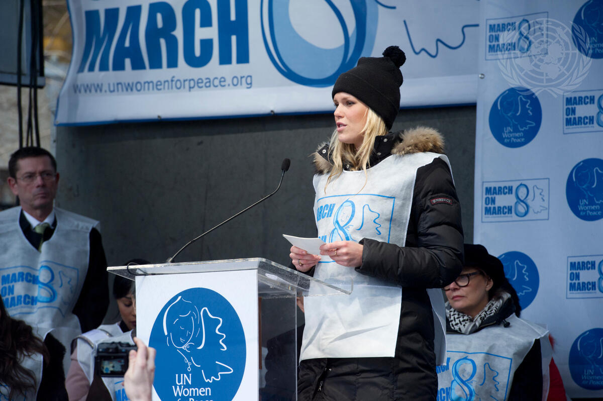 Yoo Soon-taek, wife of Secretary-General Ban Ki-moon, led a “UN Women for Peace” march outside the General Assembly Building, to mark International Women’ Day.