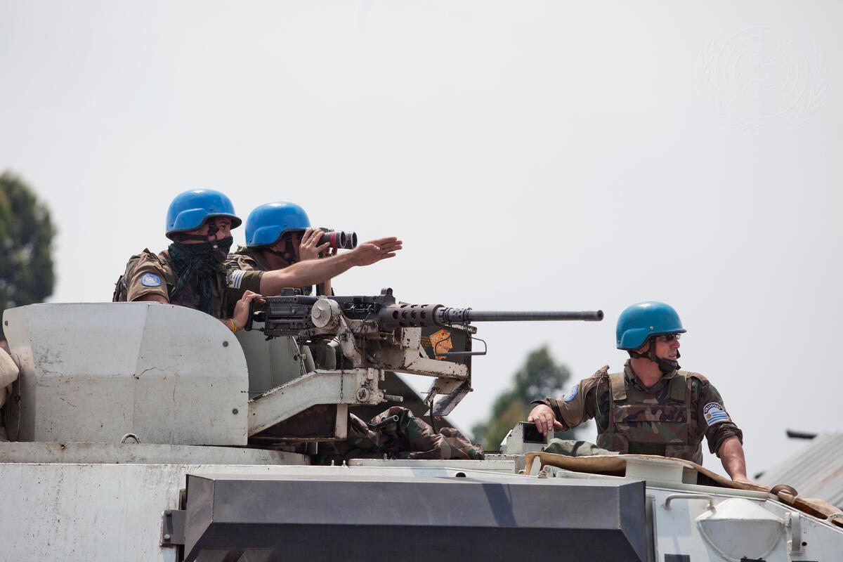 Uruguayan peacekeepers from the UN’s Mission in the Democratic Republic of the Congo (MONUSCO) observe movements of troops as a rebel militia group advances toward the city.