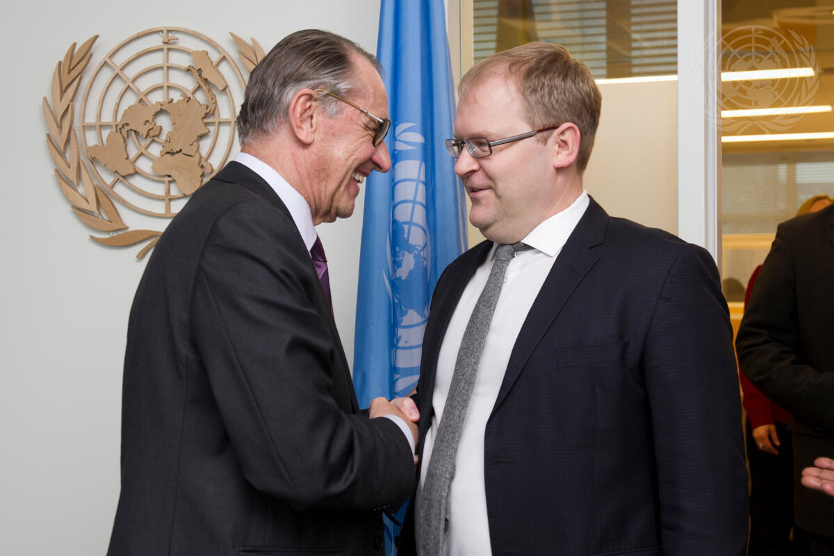 Deputy Secretary-General Jan Eliasson (left) meets with Urmas Paet, Minister for Foreign Affairs of the Republic of Estonia.