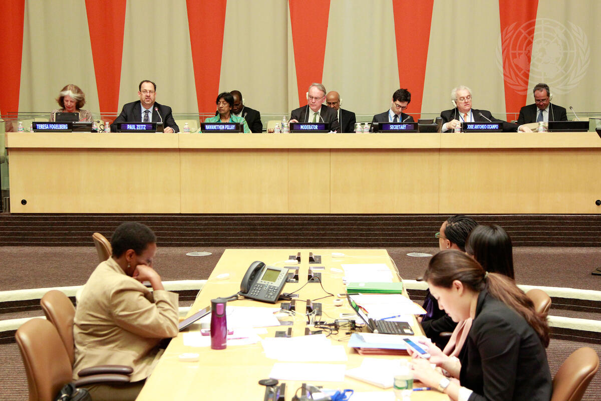 A view of the speakers’ dais during the panel discussion on “Learning from existing review mechanisms”, held as part of the interactive dialogue.