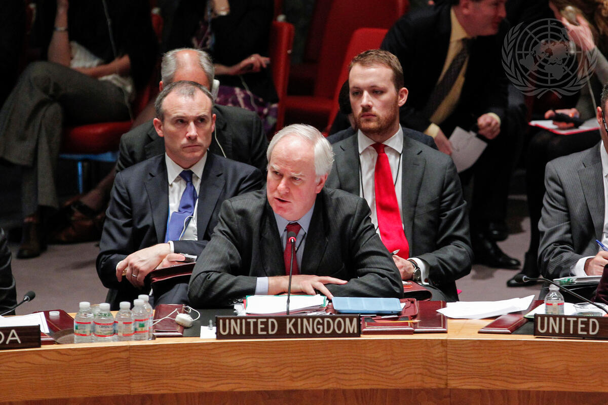 Mark Lyall Grant, Permanent Representative of the United Kingdom to the UN, addresses the Security Council meeting on the situation in Ukraine.
