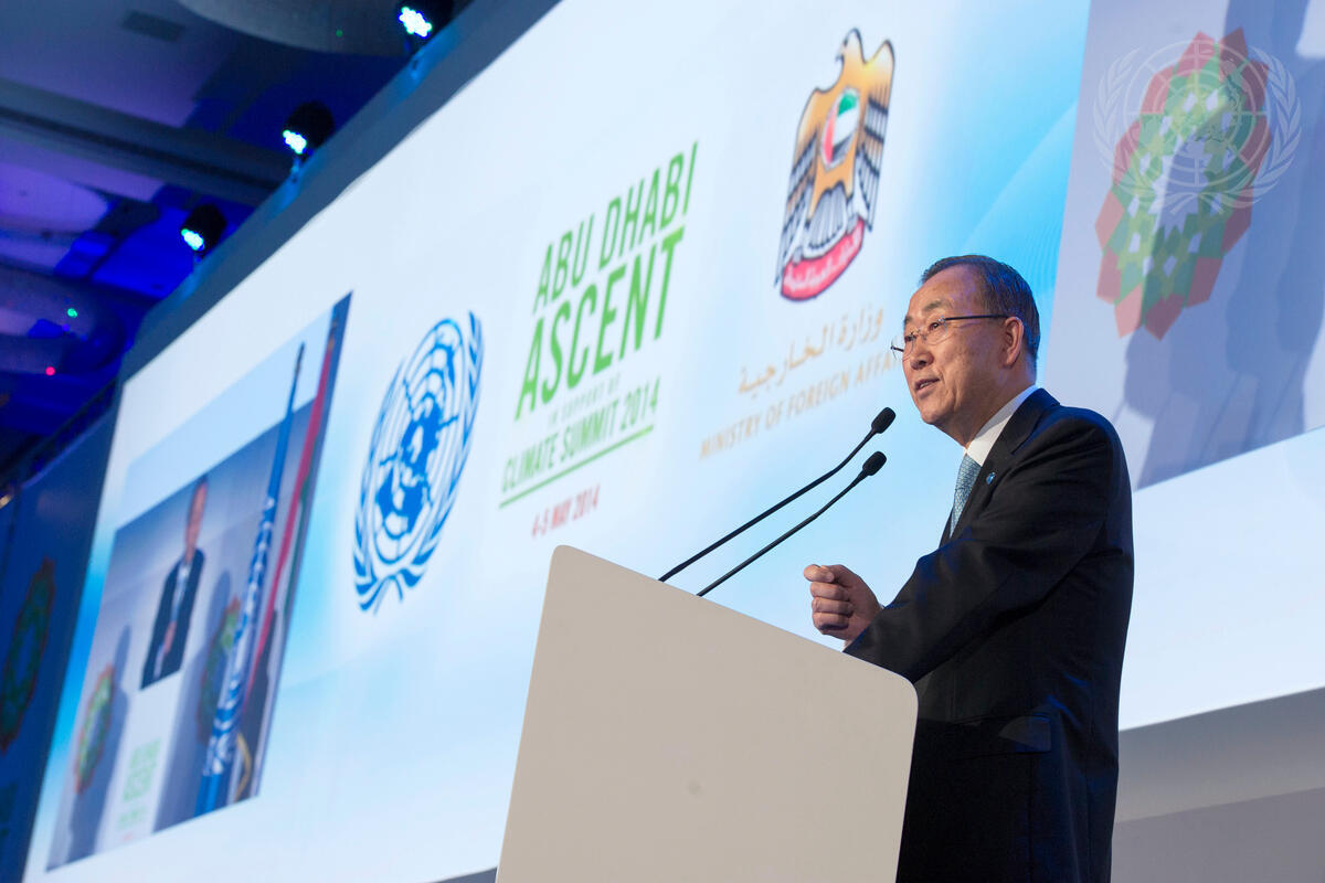 Secretary-General Ban Ki-moon addresses the opening ceremony of the Abu Dhabi Ascent climate change conference. He urged stakeholders gathered in Abu Dhabi to consider concrete actions to tackle the phenomenon now – before it is too late.