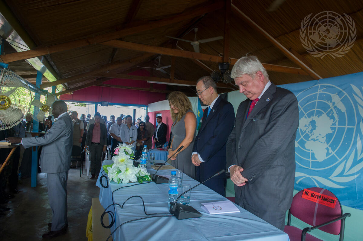 A moment of silence is observed during a town hall meeting for UN staff serving with the UN Mission in South Sudan (UNMISS), during Secretary-General Ban Ki-moon's visit to Juba.