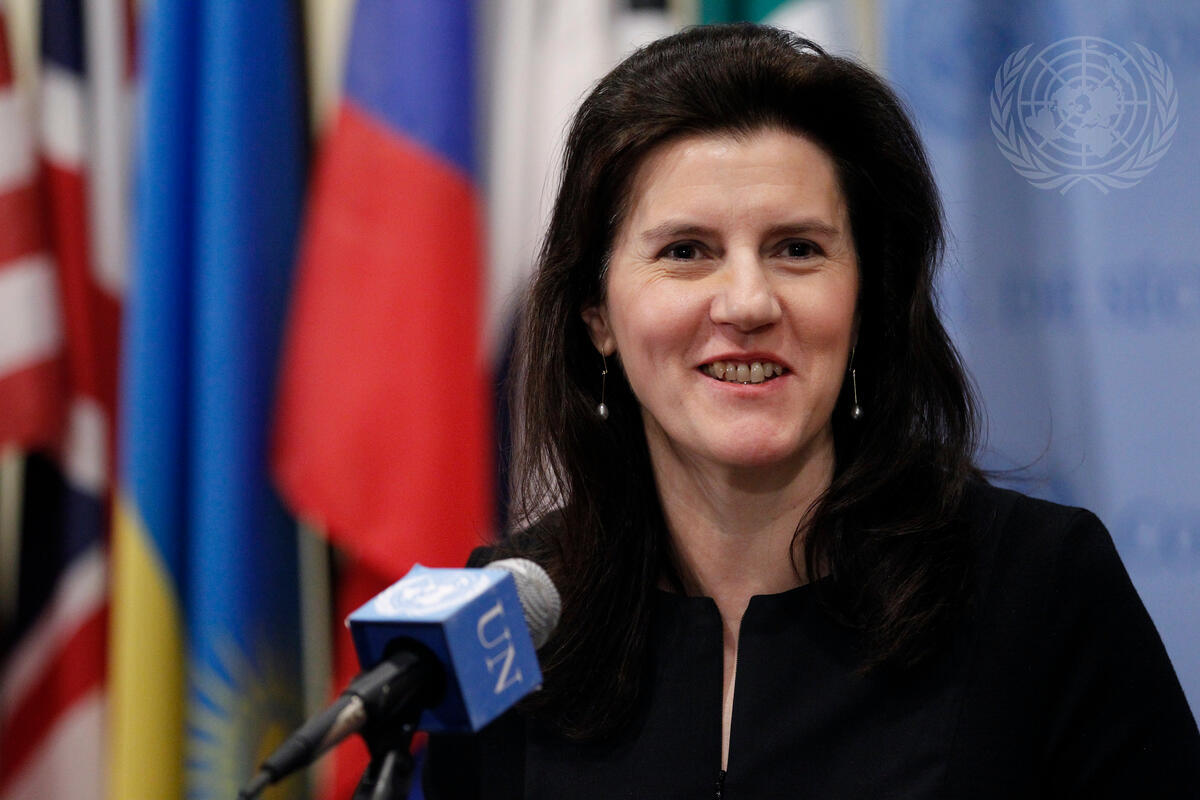 Sylvie Lucas, Permanent Representative of Luxembourg to the UN and President of the Security Council for the month of March, speaks to journalists following the Council’s meetings on the Democratic People’s Republic of Korea (DPRK), Somalia and Syria.