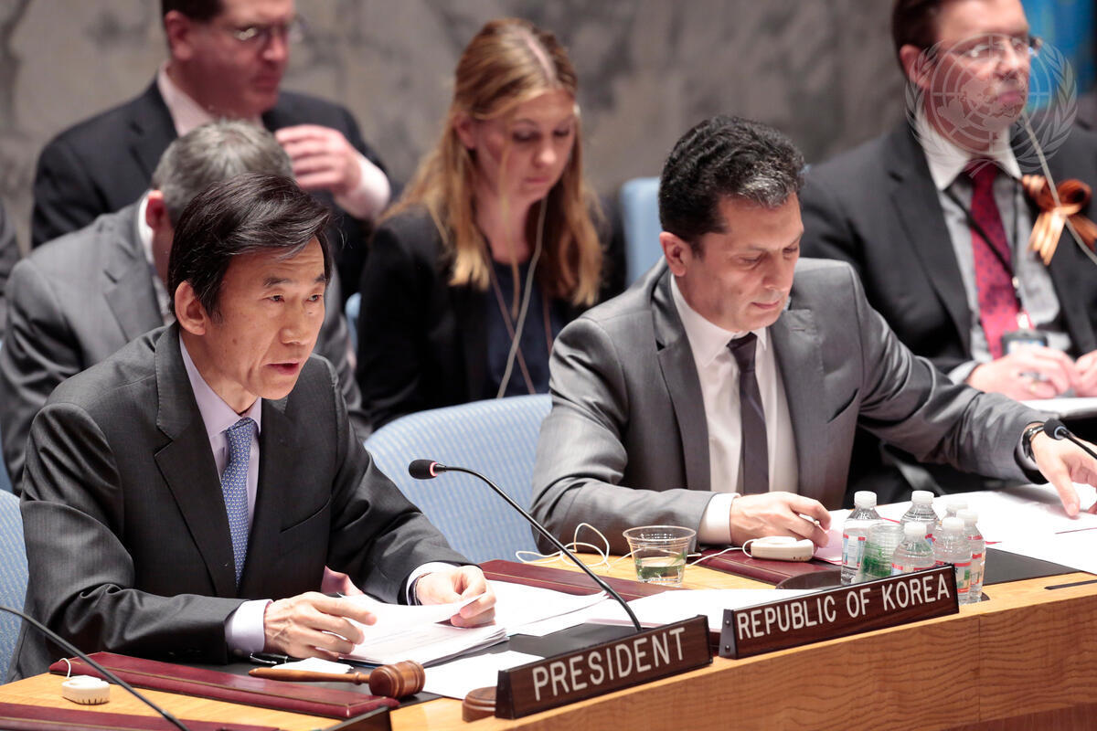 Yun Byung-se (left), Minister of Foreign Affairs of the Republic of Korea and President of the Security Council for May, addresses the Council's open debate on the non-proliferation of weapons of mass destruction. At his side is Movses Abelian, Director of the Security Council Affairs Division.