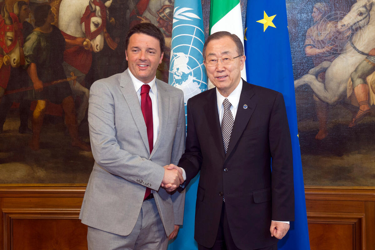 Secretary-General Ban Ki-moon (right) meets with Matteo Renzi, President of the Council of Ministers of Italy.