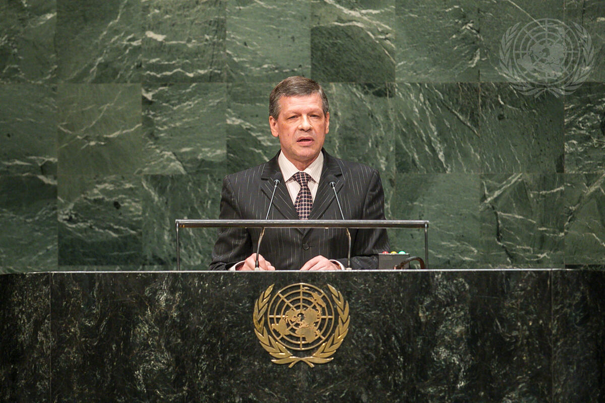 Valentin Rybakov, Deputy Minister for Foreign Affairs of the Republic of Belarus, addresses the General Assembly special session on the follow-up to the Programme of Action of the International Conference on Population and Development beyond 2014.