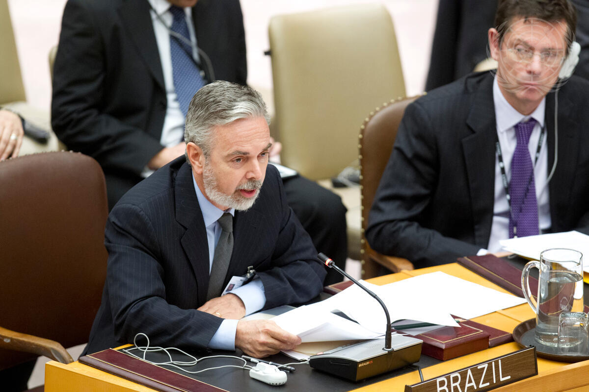 Antonio de Aguiar Patriota (left), Minister for External Relations of Brazil, addresses the Security Council open debate on the protection of civilians in armed conflict.
