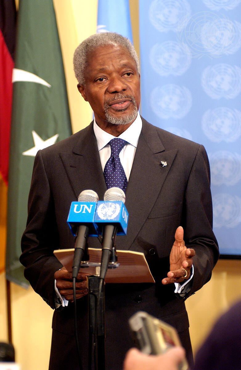 Secretary-General Kofi Annan, addresses the press following the adoption of a resolution on Iraq.