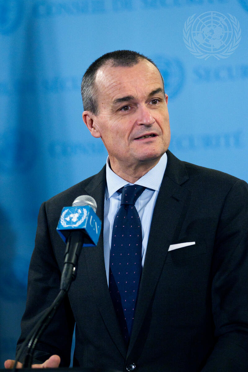 Gérard Araud, Permanent Representative of France to the UN, speaks to journalists following closed-door Security Council consultations on the situation in Mali.