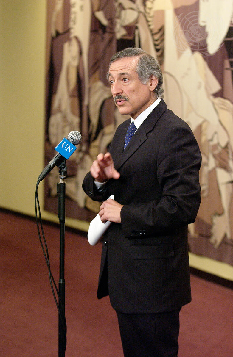 Ambassador Heraldo Munoz, Permanent Representative of Chile, addresses the press following the adoption of resolution 1546 (2004) on Iraq.