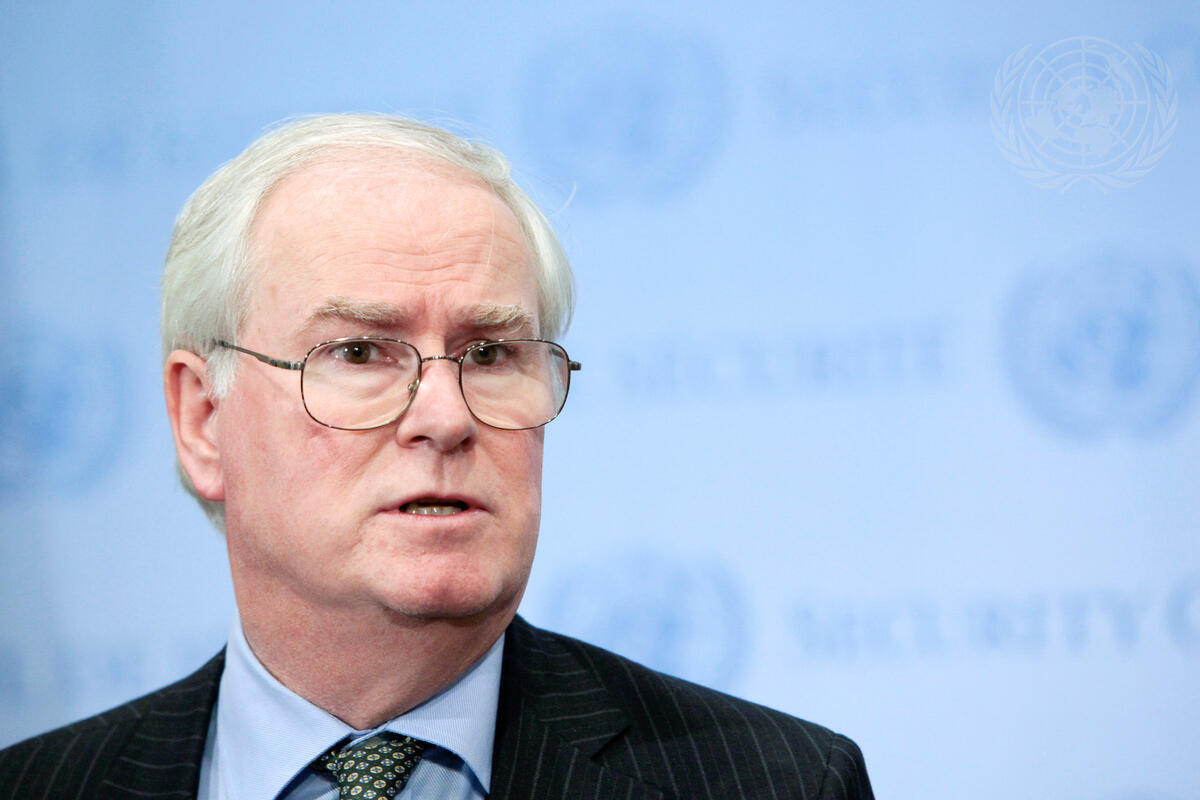 Mark Lyall Grant, Permanent Representative of the United Kingdom to the UN, briefs correspondents on the presidential statement unanimously adopted by the Security Council this morning. Concerning the humanitarian situation in Syria, the statement calls for, among other issues, unfettered access to those in need and the protection and respect of humanitarian personnel.