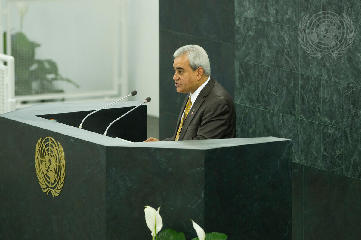 Hussein Haniff, Permanent Representative of Malaysia to the United Nations, addresses the General Assembly. The thirty-second plenary meeting considered apportionment of UN expenses, the Secretary-General's Report on the Work of the Organization and the post-2015 development agenda.