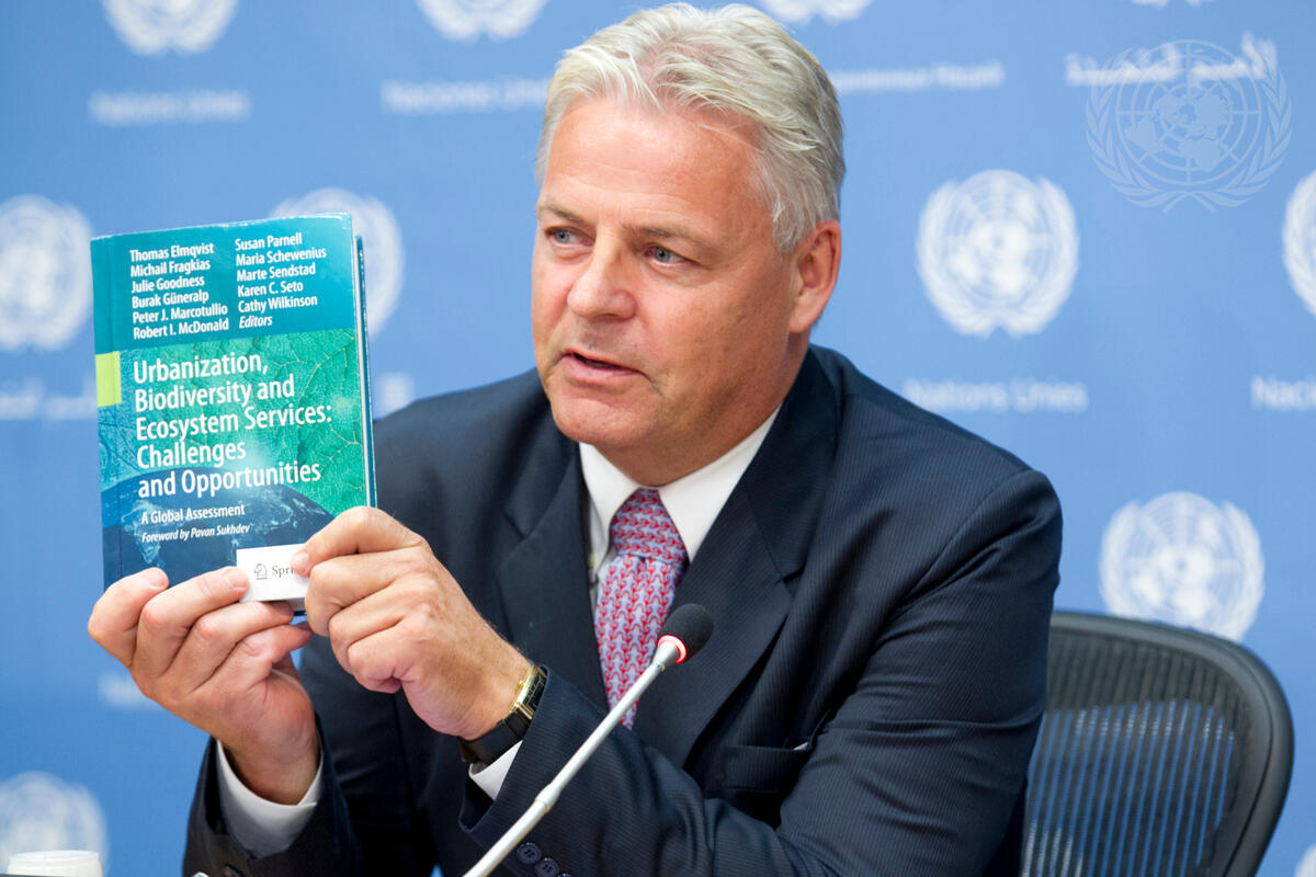 Thomas Elmqvist, Professor at the Stockholm Resilience Centre, Stockholm University, addresses a press conference in advance of World Habitat Day (7 October).