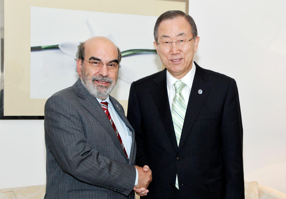 Secretary-General Ban Ki-moon (right) meets with José Graziano da Silva, Director-General of the Food and Agricultural Organization (FAO).