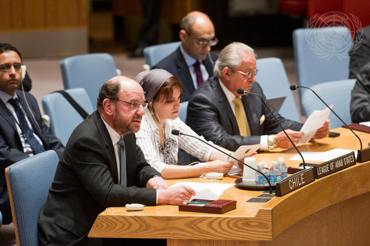 Alfredo Moreno Charme (left), Minister for Foreign Affairs of Chile, addresses the Security Council debate on cooperation between the UN and regional and subregional organizations in maintaining international peace and security.