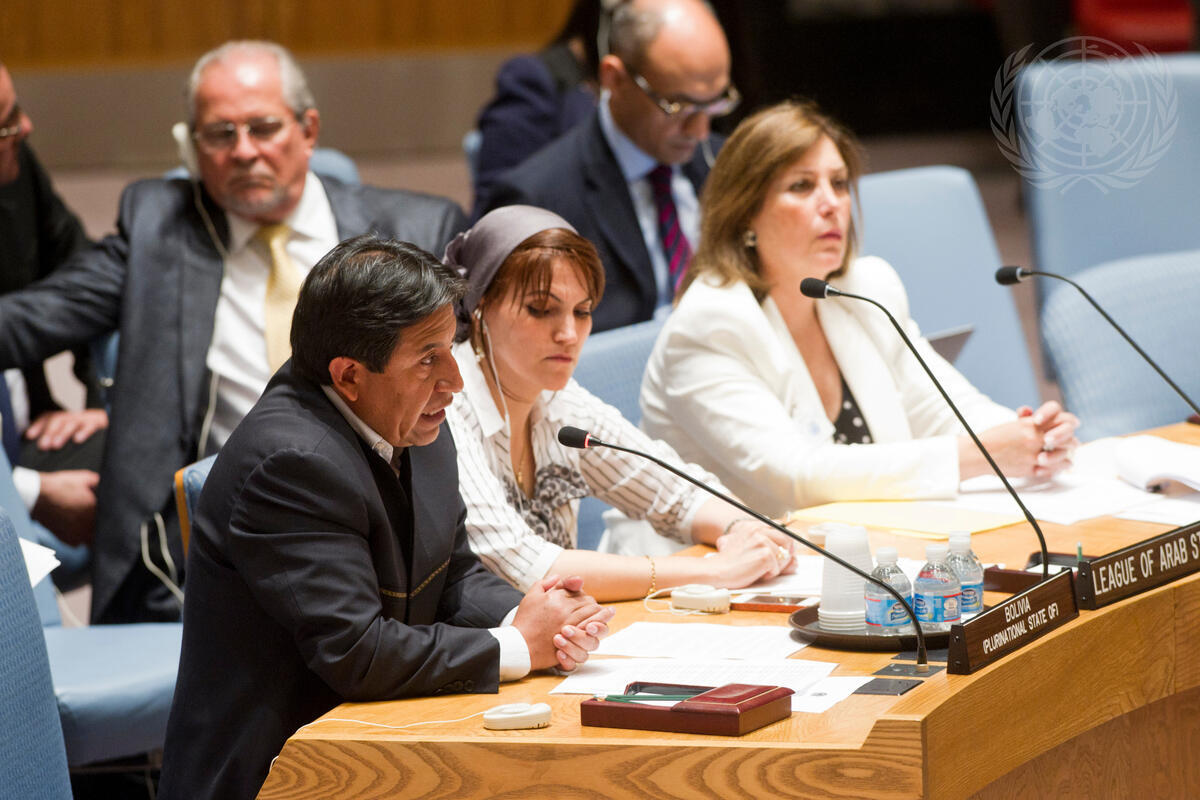 David Choquehuanca Céspedes (left), Minister for Foreign Affairs of the Plurinational State of Bolivia, addresses the Security Council debate on cooperation between the UN and regional and subregional organizations in maintaining international peace and security.
