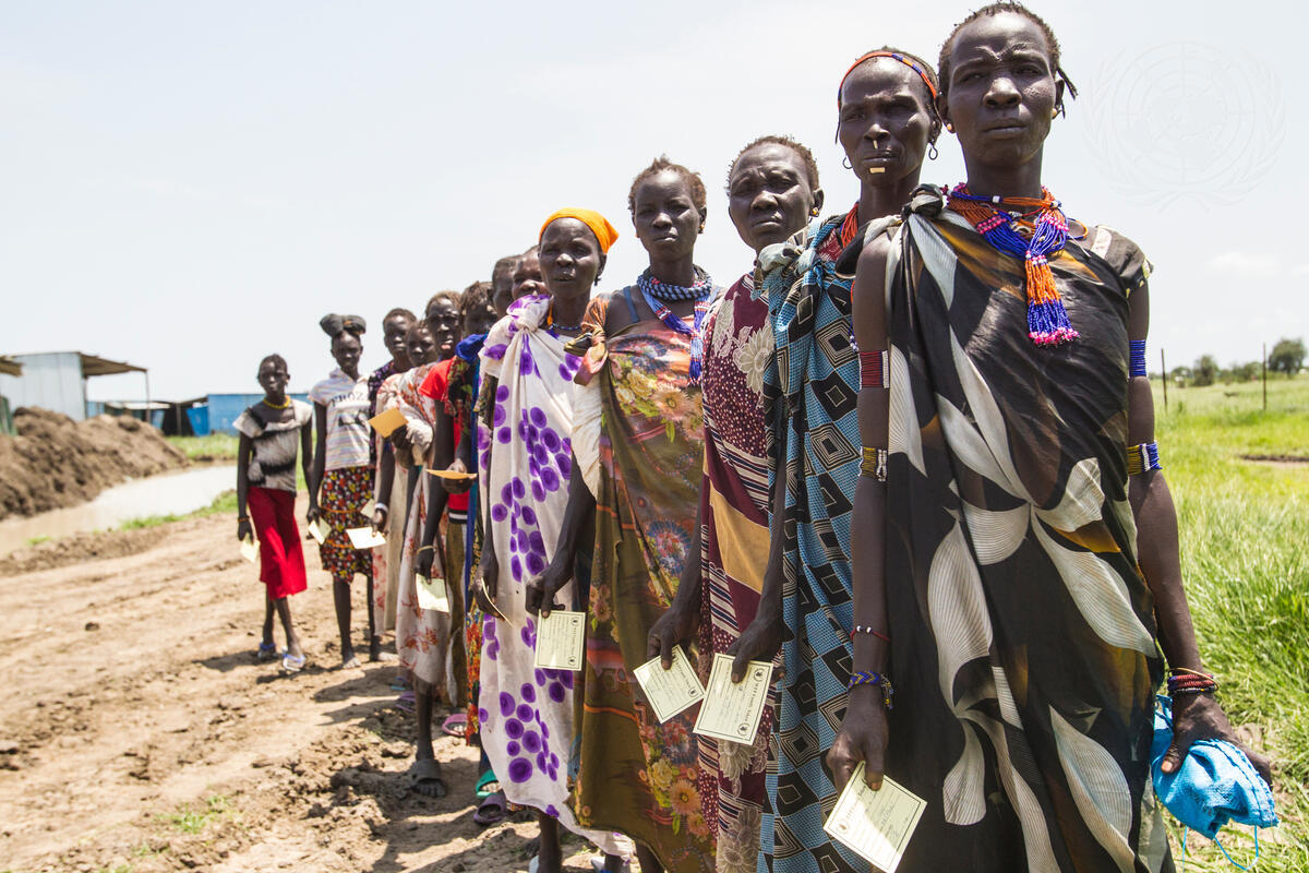 Food assistance in Pibor town on 24 July began with registration at the market, followed by distribution at the WFP warehouse.