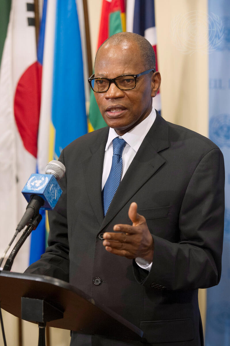Mohamed Ibn Chambas, Joint Special Representative and Head of the African Union and United Nations Mission in Darfur (UNAMID), speaks to journalists following his briefing to the Security Council.