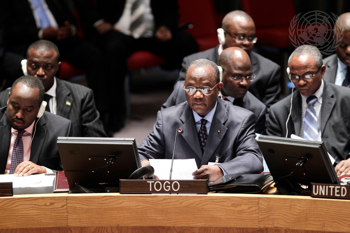Koffi Esaw (centre), Minister, Senior Adviser to the President for diplomatic matters and cooperation of Togo, addresses the Council.