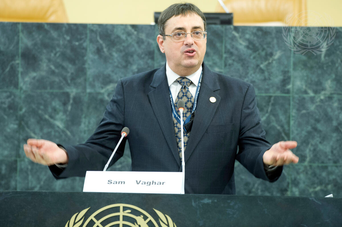 Patrick Sciarratta, Executive Director of the Friendship Ambassadors Foundation (FAF) and Co-creator and Producer of the Youth Assembly at the United Nations, addresses the participants.