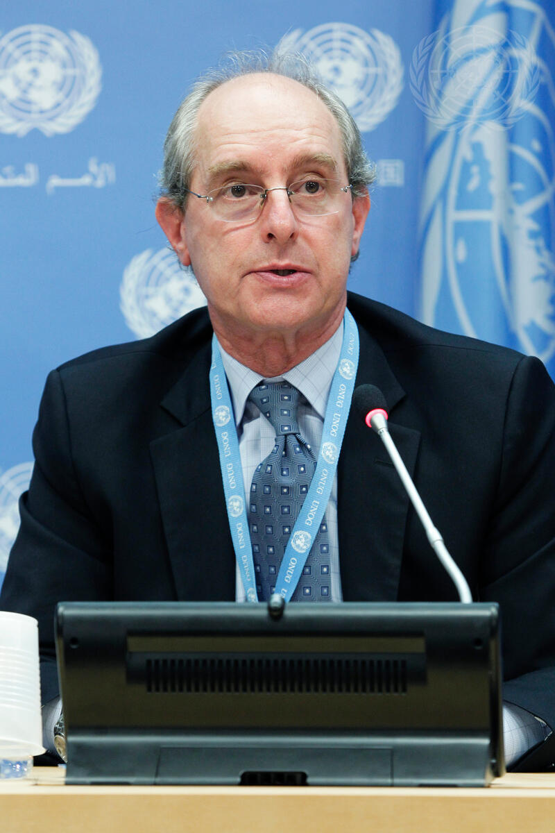 Gabor Rona (United States/Hungary), member of the UN Working Group on the Use of Mercenaries, briefs correspondents on the use of private military and security companies in United Nations peacekeeping and humanitarian operations in the field.