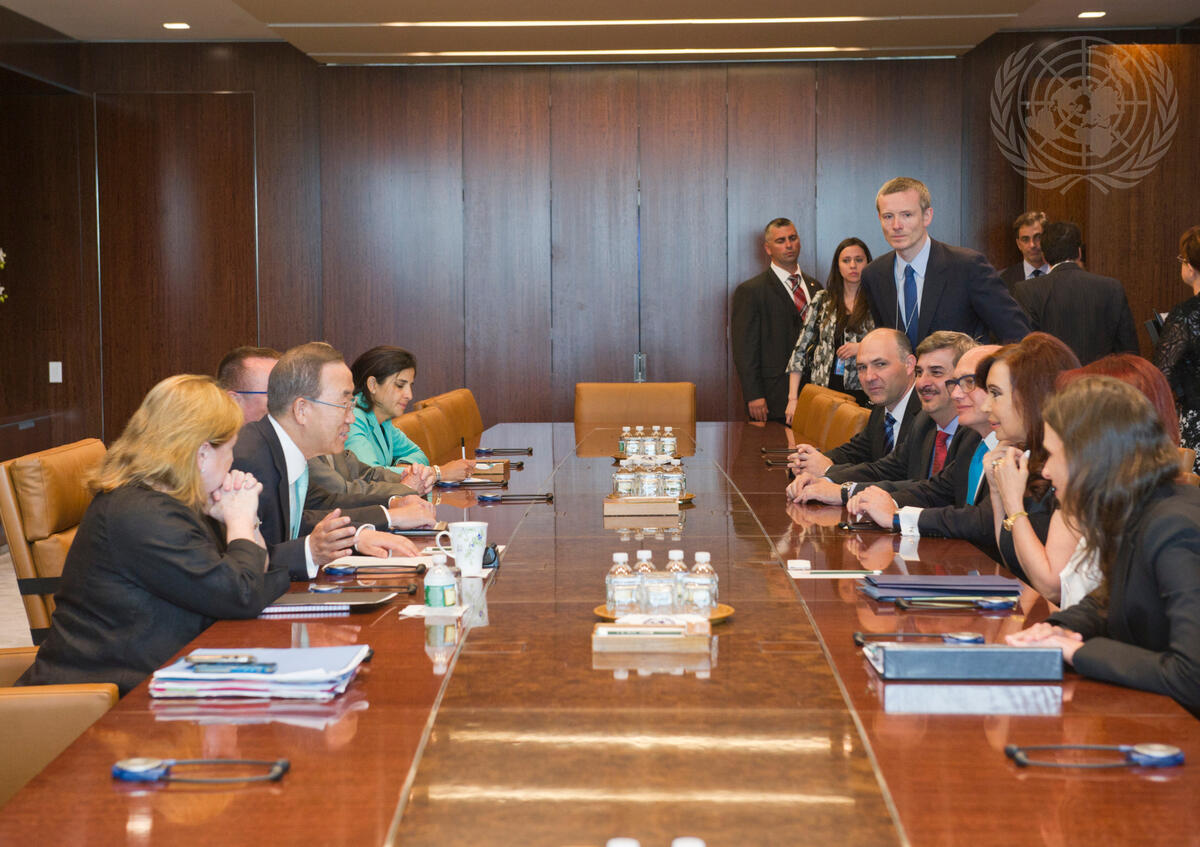Secretary-General Ban Ki-moon (second from left) meets with Cristina Fernández (directly across table), President of Argentina.