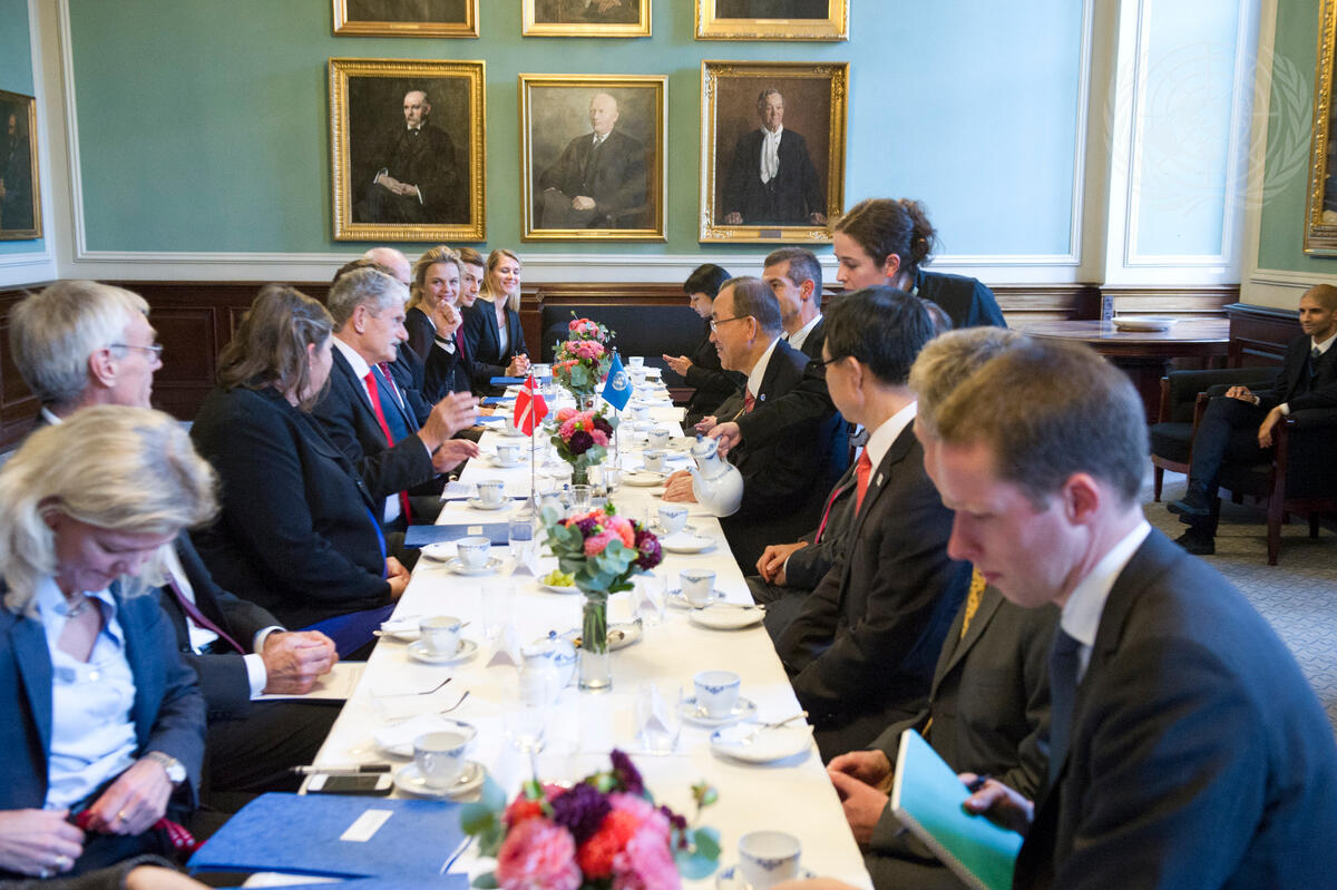 Secretary-General Ban Ki-moon (centre right) meets with Mogens Lykketoft (centre left), Speaker of the Parliament of Denmark, in Copenhagen.