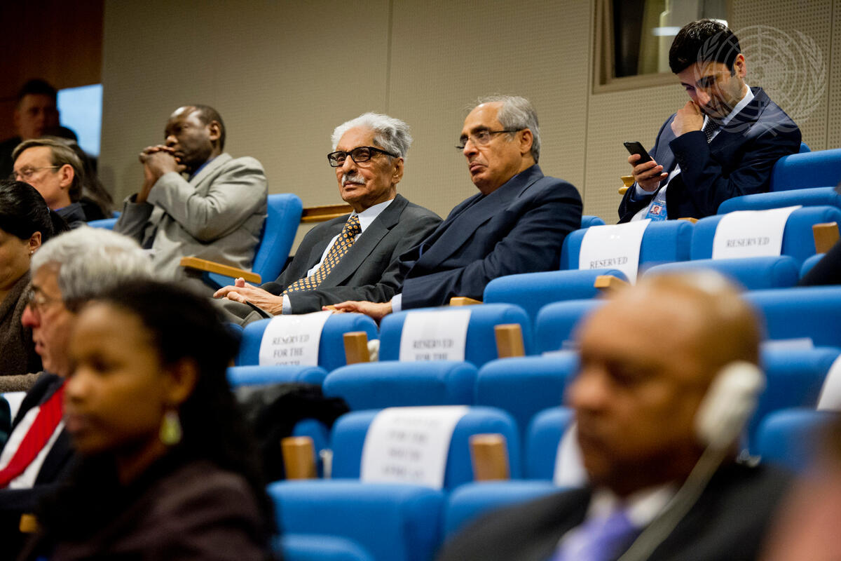 Attending the event, Enuga Reddy (centre left), former Principal Secretary of the UN Special Committee against Apartheid; and Vijay Nambiar (centre right), Special Adviser to the Secretary-General for Myanmar.